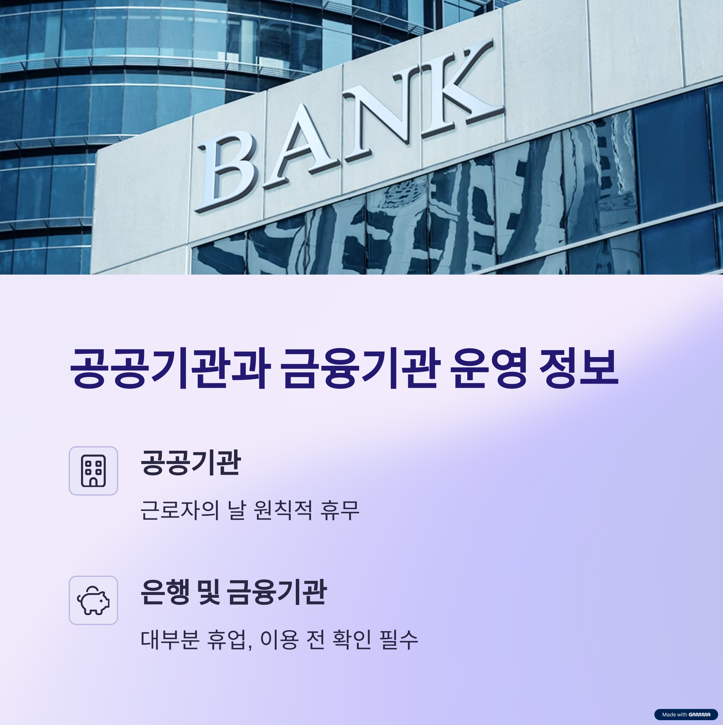 공공기관과 금융기관 운영 여부