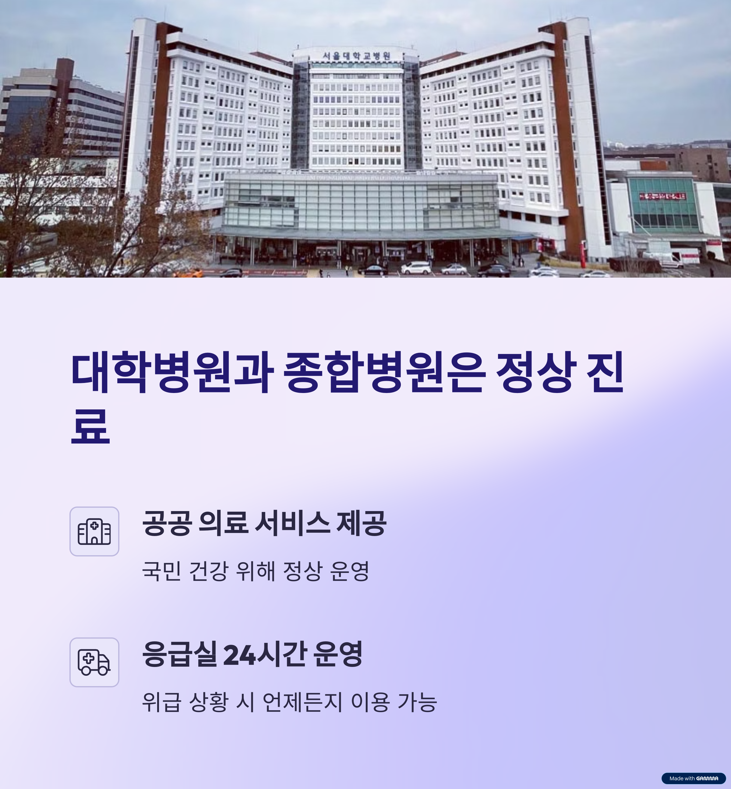 대학병원과 종합병원은 근로자의 날에도 정상 진료를 실시합니다.