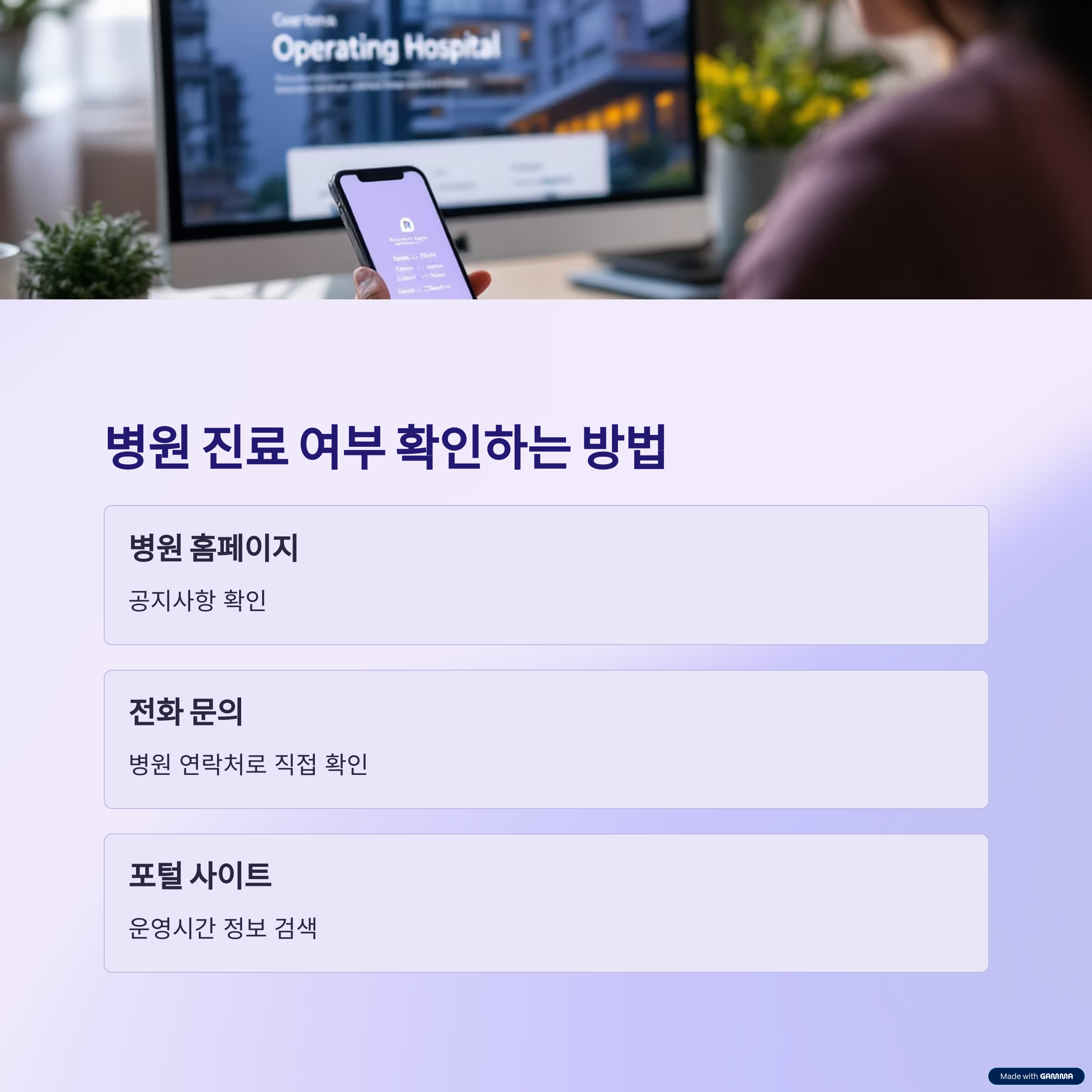 병원 진료 여부는 해당 병원의 공식 홈페이지나 전화를 통해 확인할 수 있습니다.