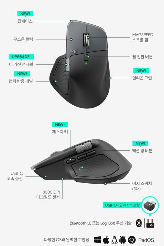 MX MASTER 4 주요 사양 한눈에 보기