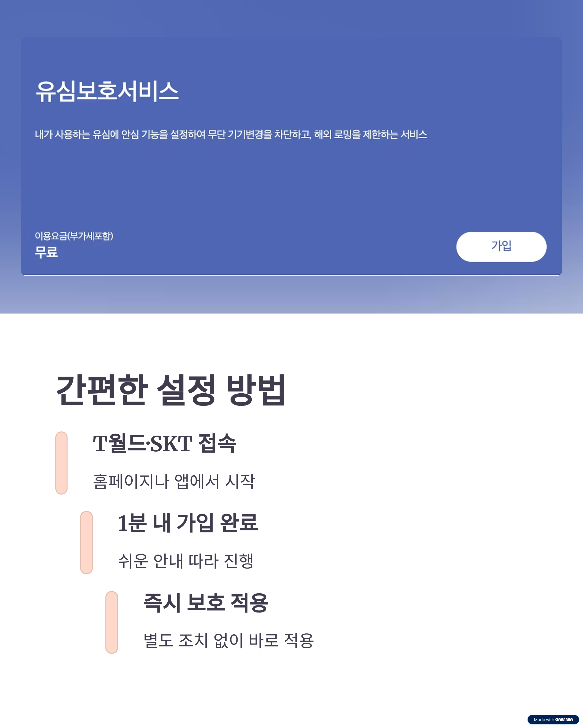 SKT 유심보호서비스는 T월드 앱 또는 SKT 고객센터에서 1분 안에 설정 가능합니다.