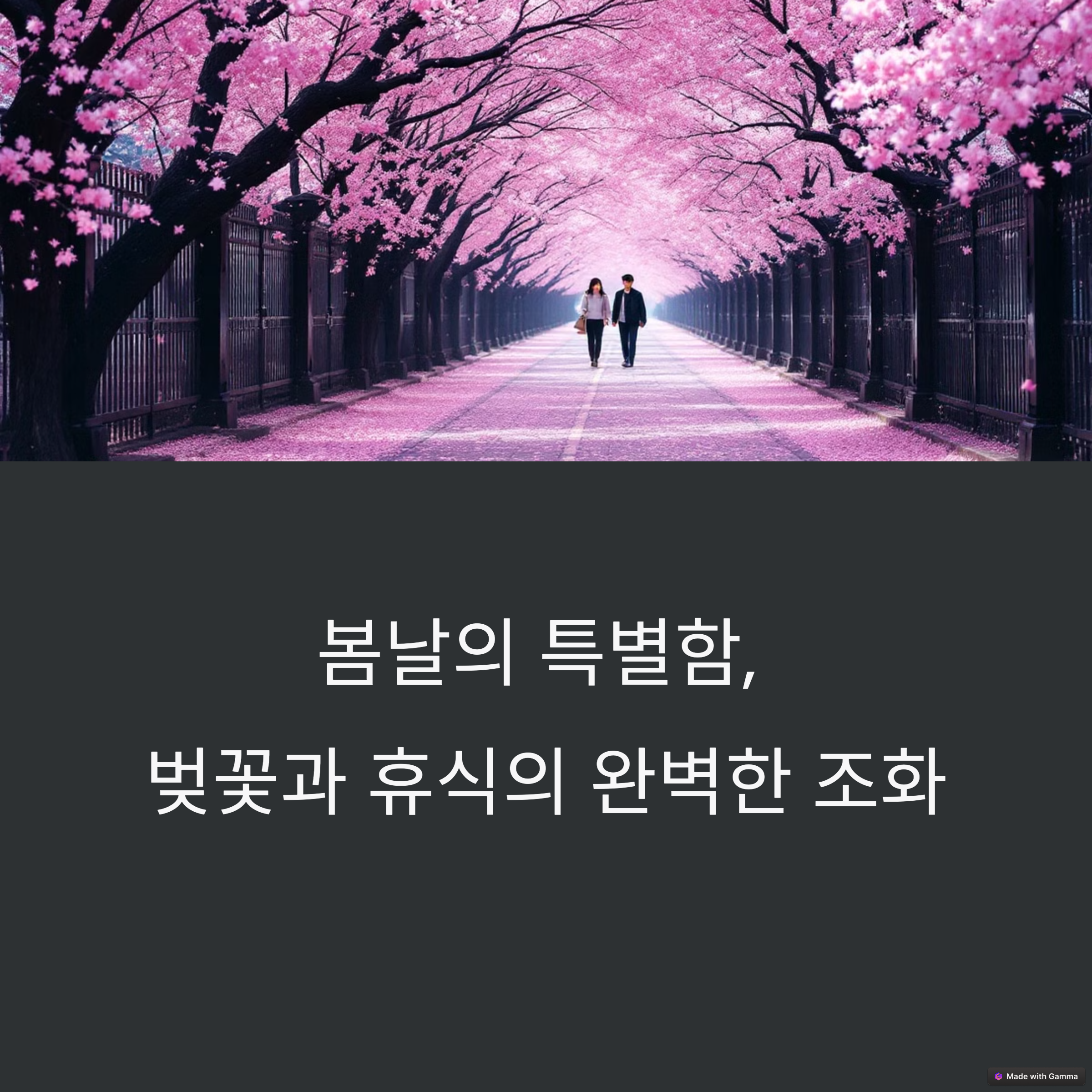 벚꽃길을 따라 걷는 것만으로도 충분히 특별하지만, 그 여정을 더 깊이 있게 만들어주는 건 바로 그 공간에서의 '쉼'입니다. 좋은 장소에서, 좋은 사람과, 혹은 혼자라도 온전한 시간을 보낼 수 있다면 그 하루는 오래도록 기억에 남는 봄날이 될 것입니다.