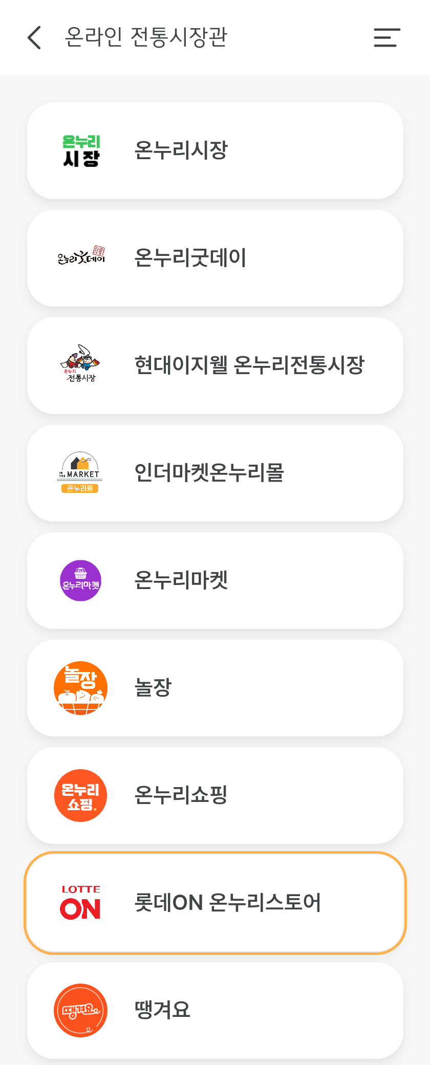 | 결제 방식 | 온누리상품권 → 앱 연동 결제 방식 선택 필요 |