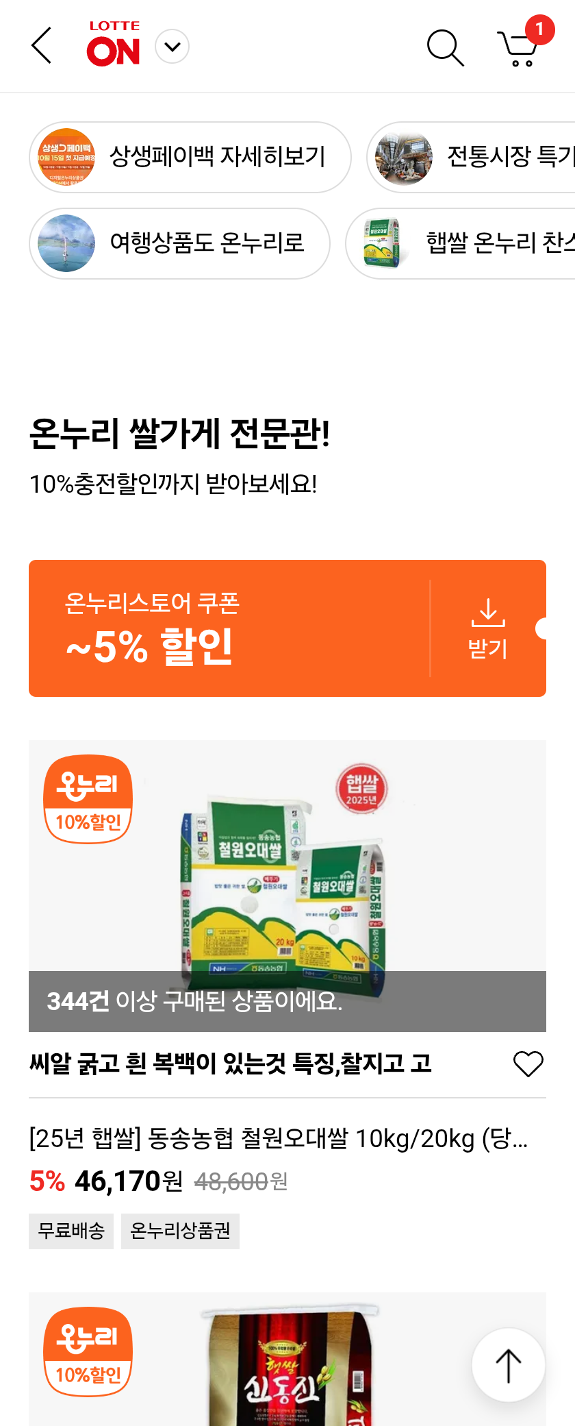 필자는 롯데ON 온누리스토어 내 '온누리스토어 가을특집'에서 철월오대쌀을 주문했습니다.