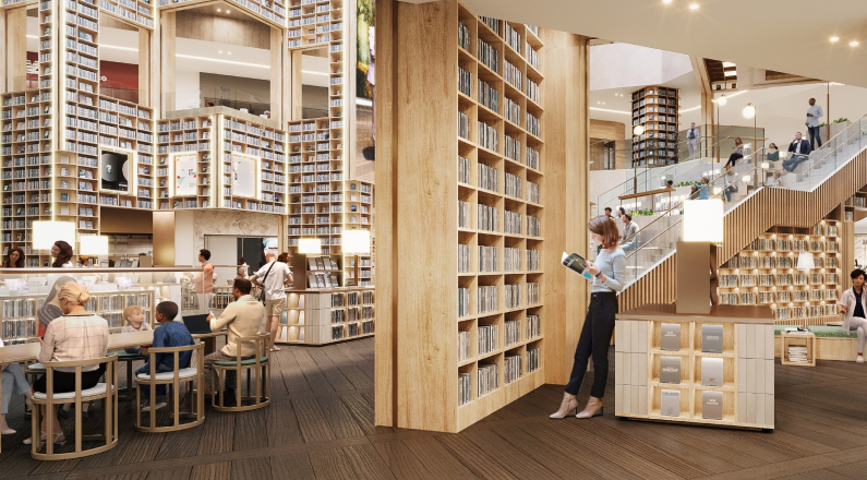 스타필드 수원의 중심 공간인 별마당 도서관은 4층 높이의 거대한 북 타워를 이루고 있습니다.