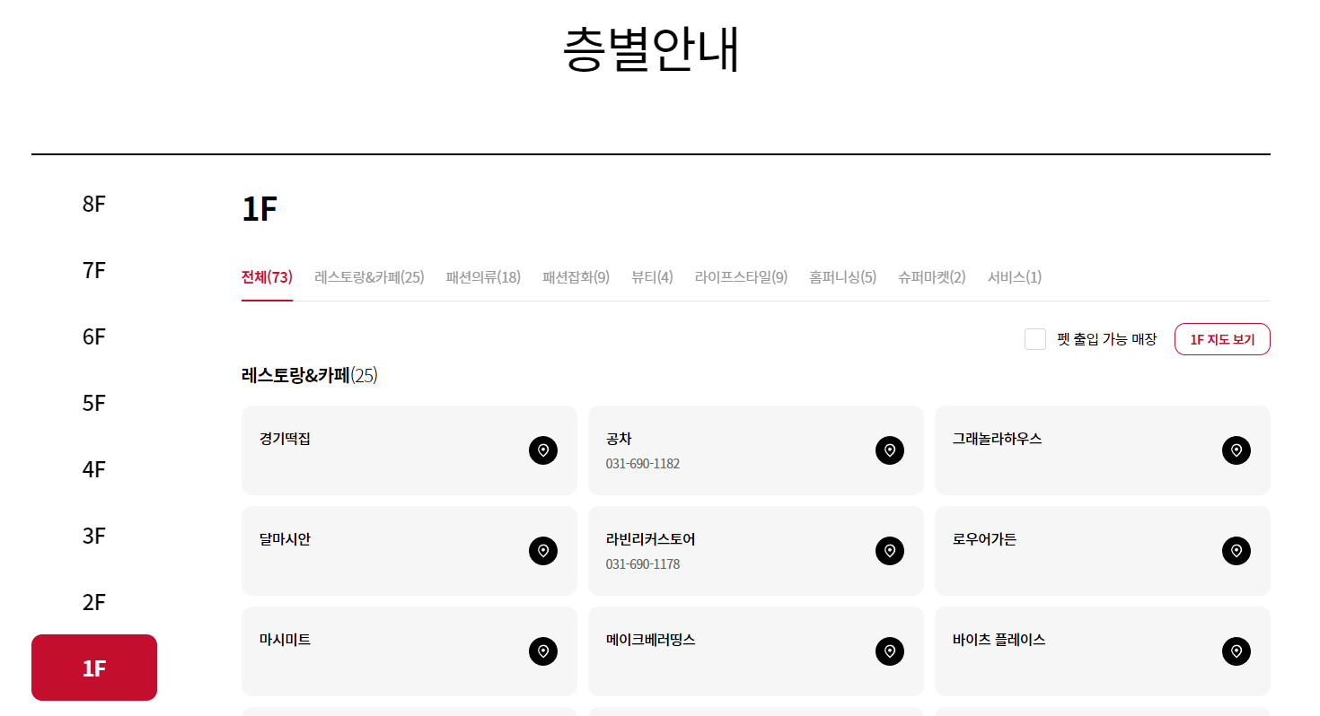 스타필드 수원 층별 안내
