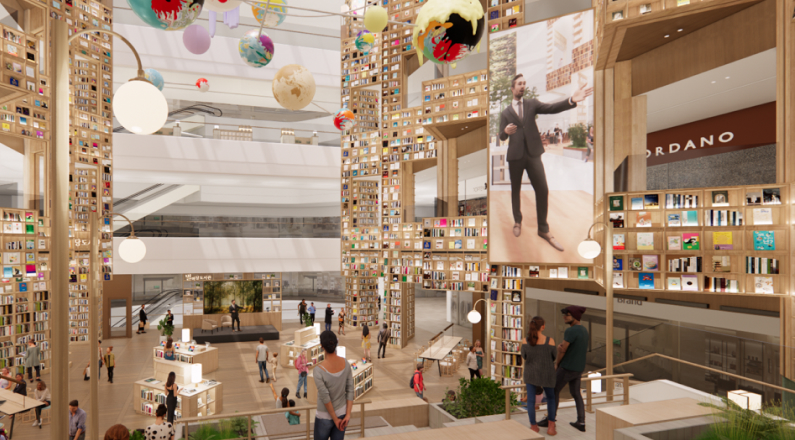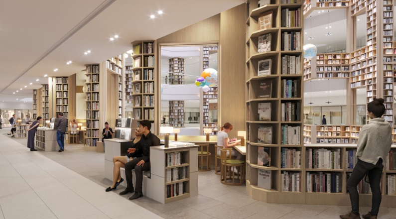 스타필드 수원의 중심 공간인 별마당 도서관은 4층 높이의 거대한 북 타워를 이루고 있습니다.