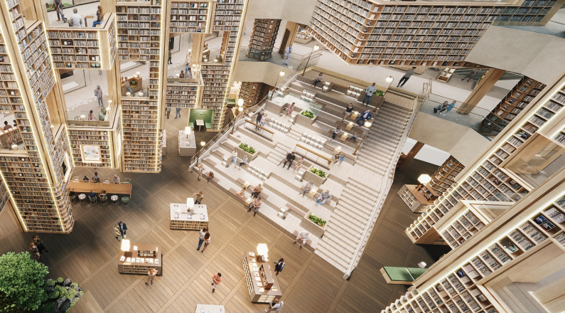 약 3만여 권의 책이 조성되어 있어 방문객이 언제든 편안하게 독서와 휴식을 즐길 수 있는 복합 문화공간으로 조성되어 있습니다.