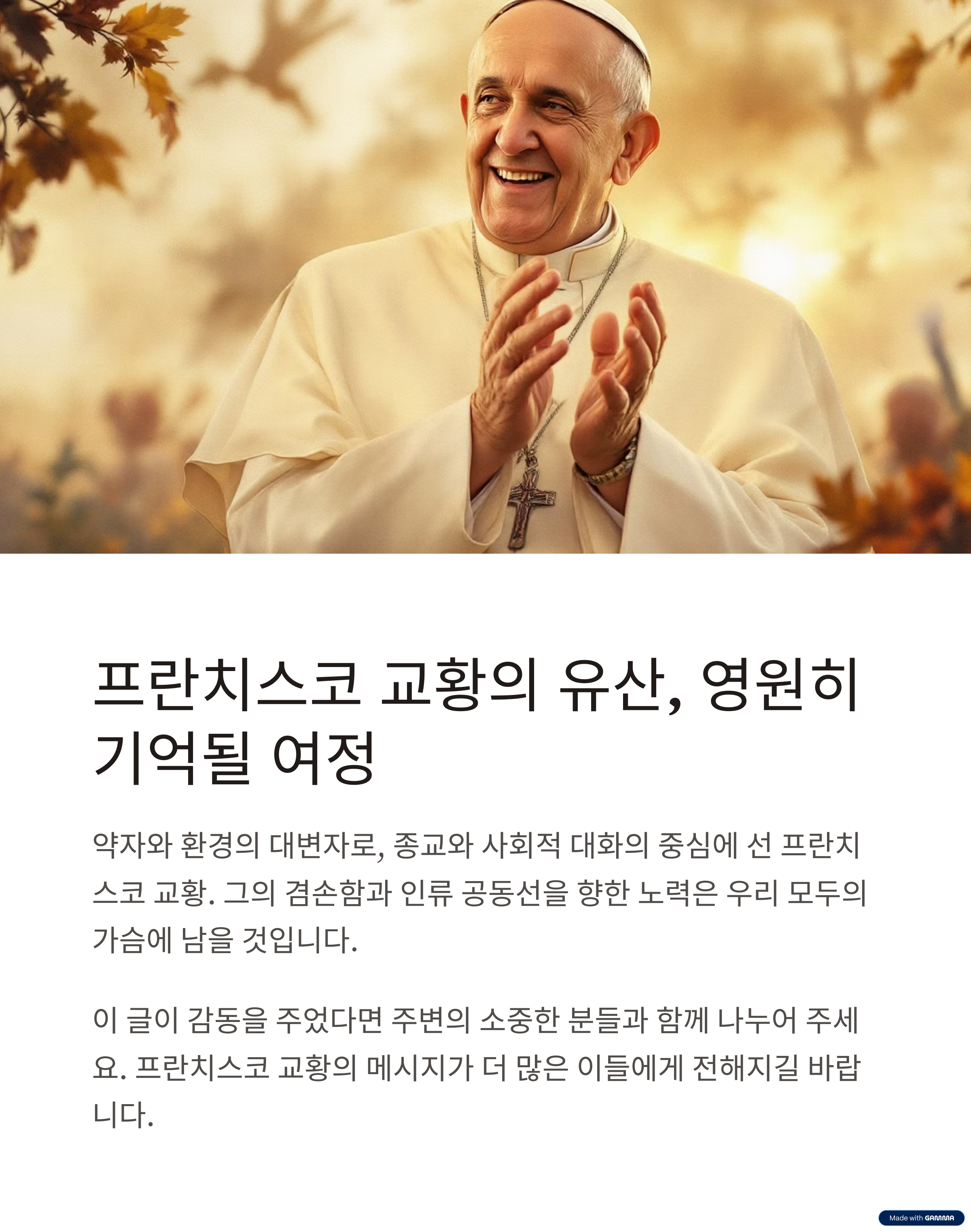 전 세계 청년들에게 용기와 감동을 안겨주었습니다. 🕊️