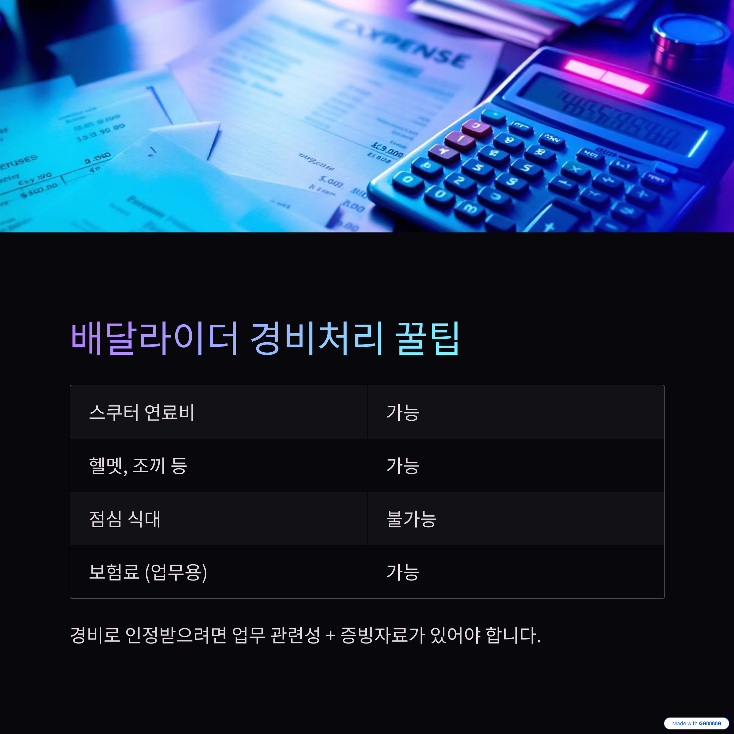 Q. 스쿠터 기름값, 헬멧 구매비도 경비처리 되나요?