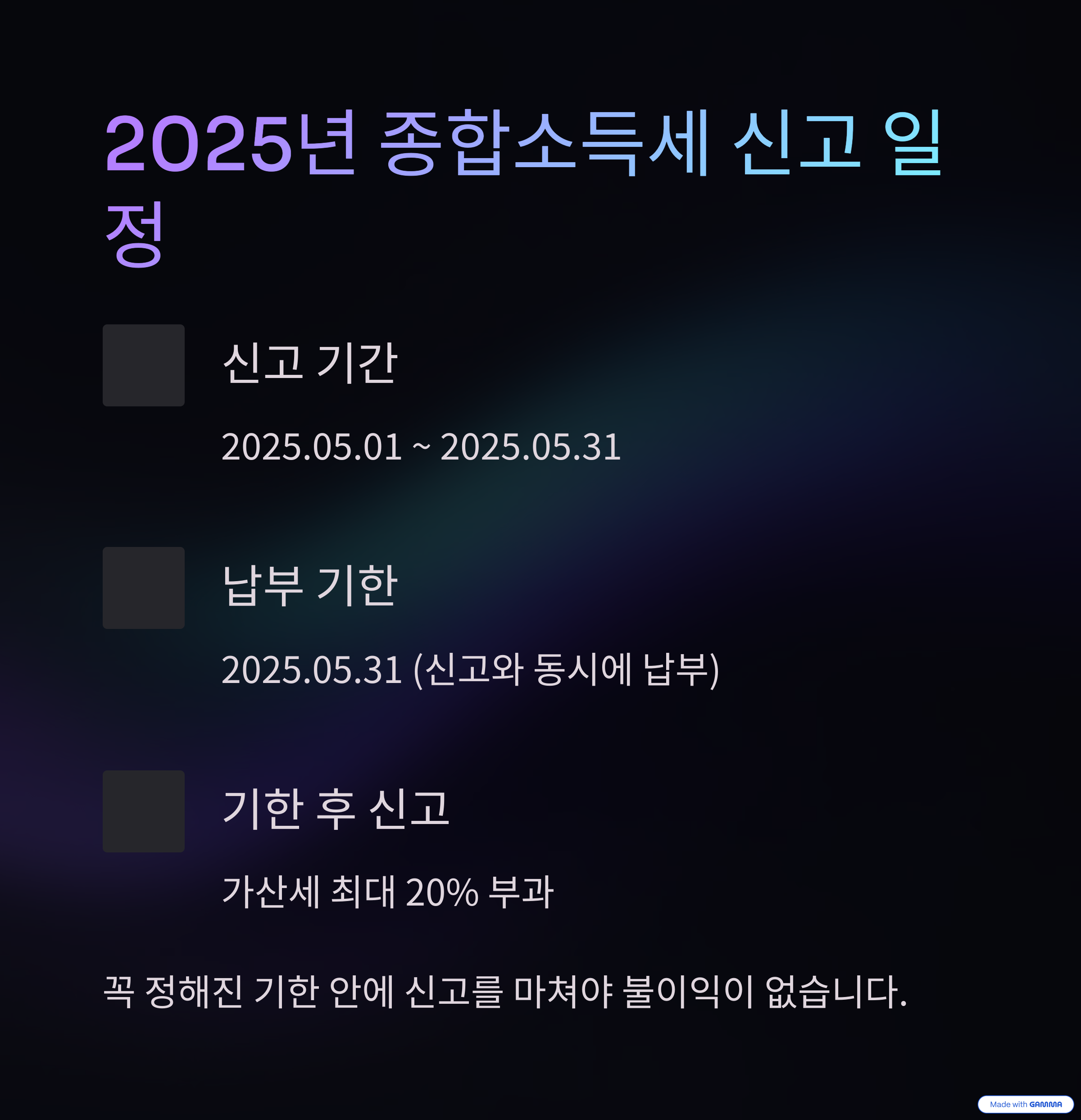 1. 2025년 종합소득세 신고기간 및 주요 일정