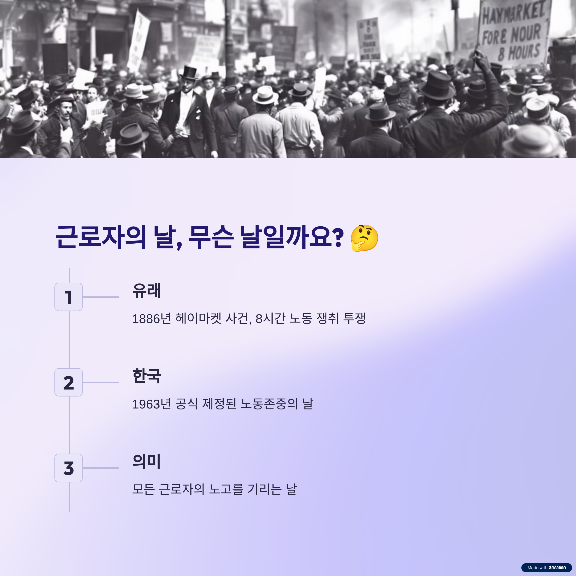 단순한 휴일이 아닌, 노동의 가치를 되새기는 날이라는 점을 잊지 말아야 합니다.