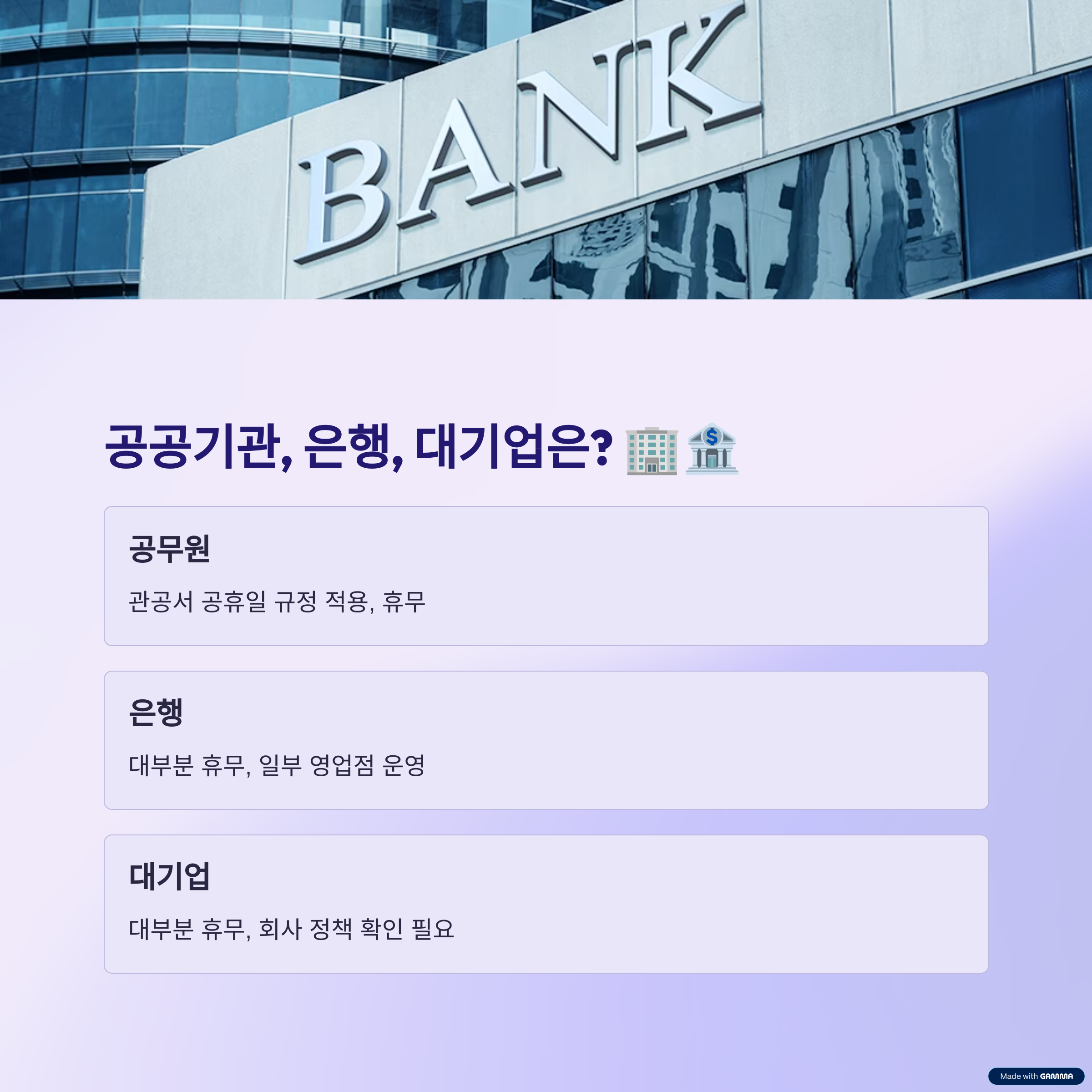 공공기관, 은행, 대기업의 근로자의 날 휴무