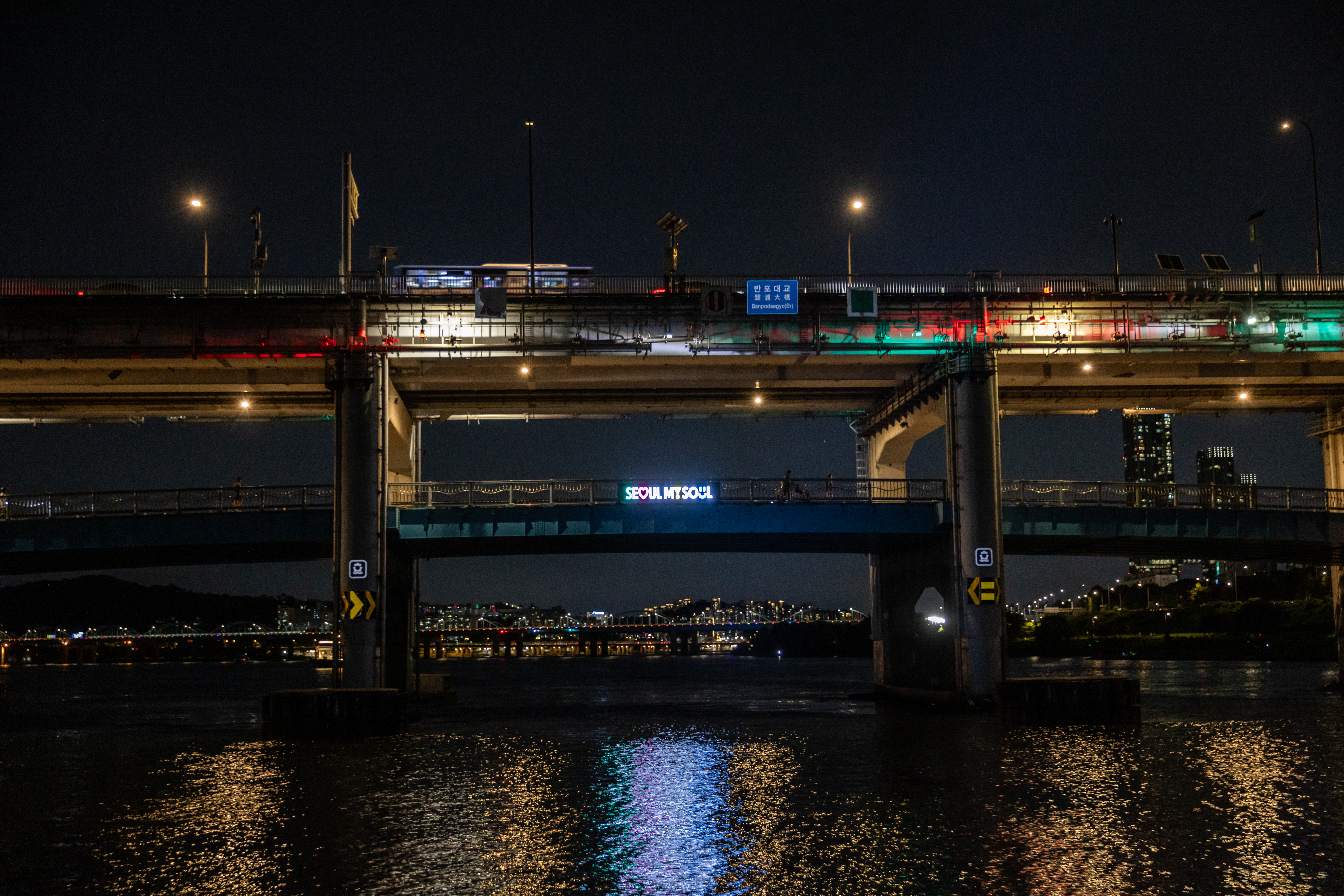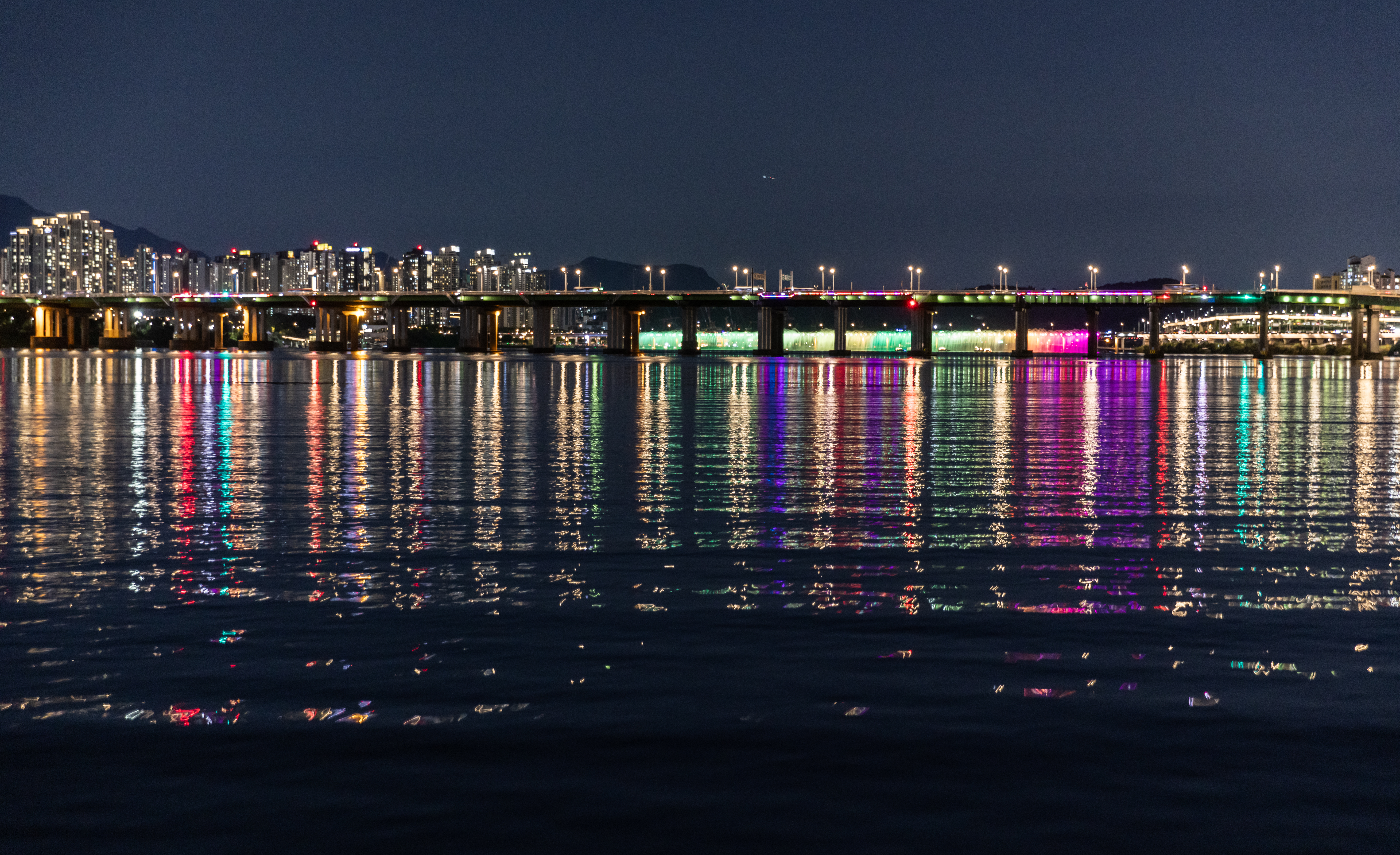 | 반포대교~세빛섬 | 무지개분수와 다리 조명 반사 |