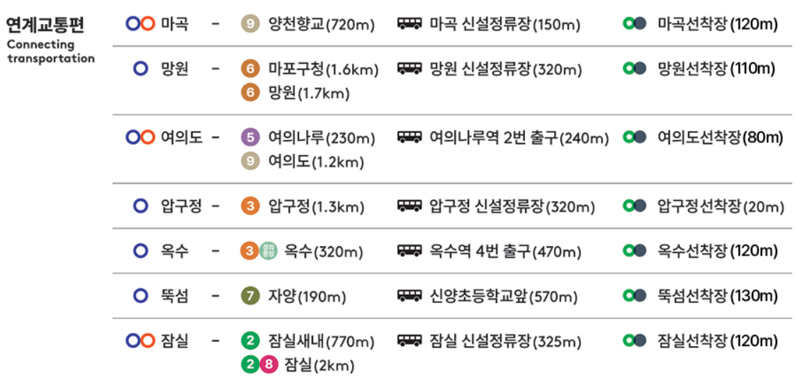 | 선착장 | 지하철 | 셔틀버스 | 따릉이 |