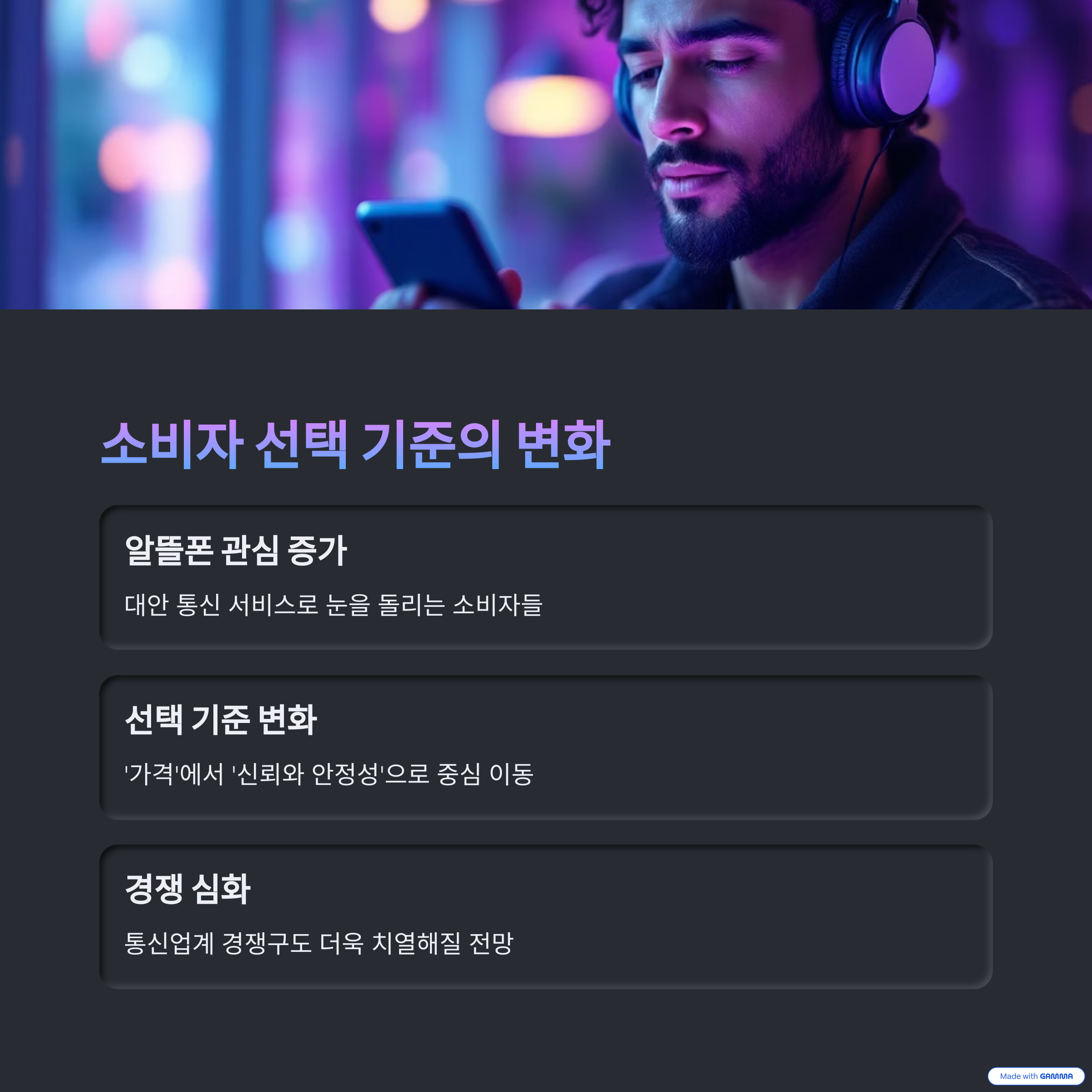 '가격' 중심에서 '신뢰와 안정성' 중심으로 통신사 선택 기준이 변화하고 있으며,